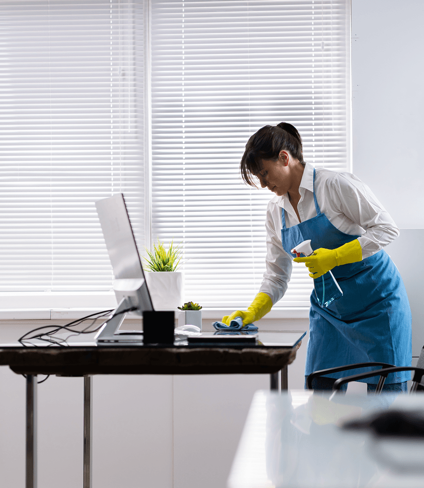 Surface Cleaning:: Sanitizing desks, tables, and work surfaces to remove dust, germs, and stains