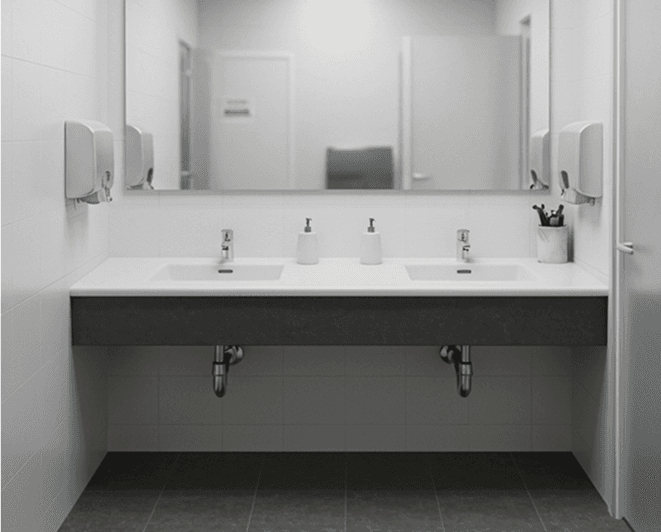 Sanitization: Thorough disinfection of toilets, sinks, and fixtures to maintain hygiene.